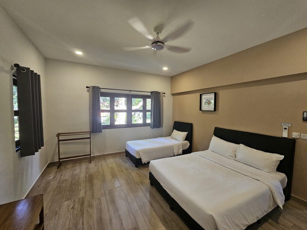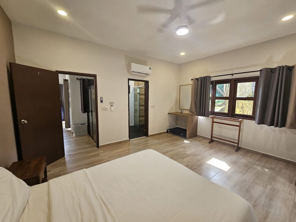 A few practical notes that help set expectations: check-in is done at the CSC office, which is about a 10-minute drive from the bungalow. Parking isn’t right at the doorstep; there’s a small free carpark slightly away, so you’ll need to carry items or use a trolley to move your food, drinks, and luggage over. Thankfully, it’s not a punishing distance and the route is slope-accessible without stairs, which makes the back-and-forth much more manageable. Also for the living room area, which is not air-conditioned. Fortunately all individual rooms are air-conditioned. However the place is so cooling in the evening, living room is windy and cool even without it.