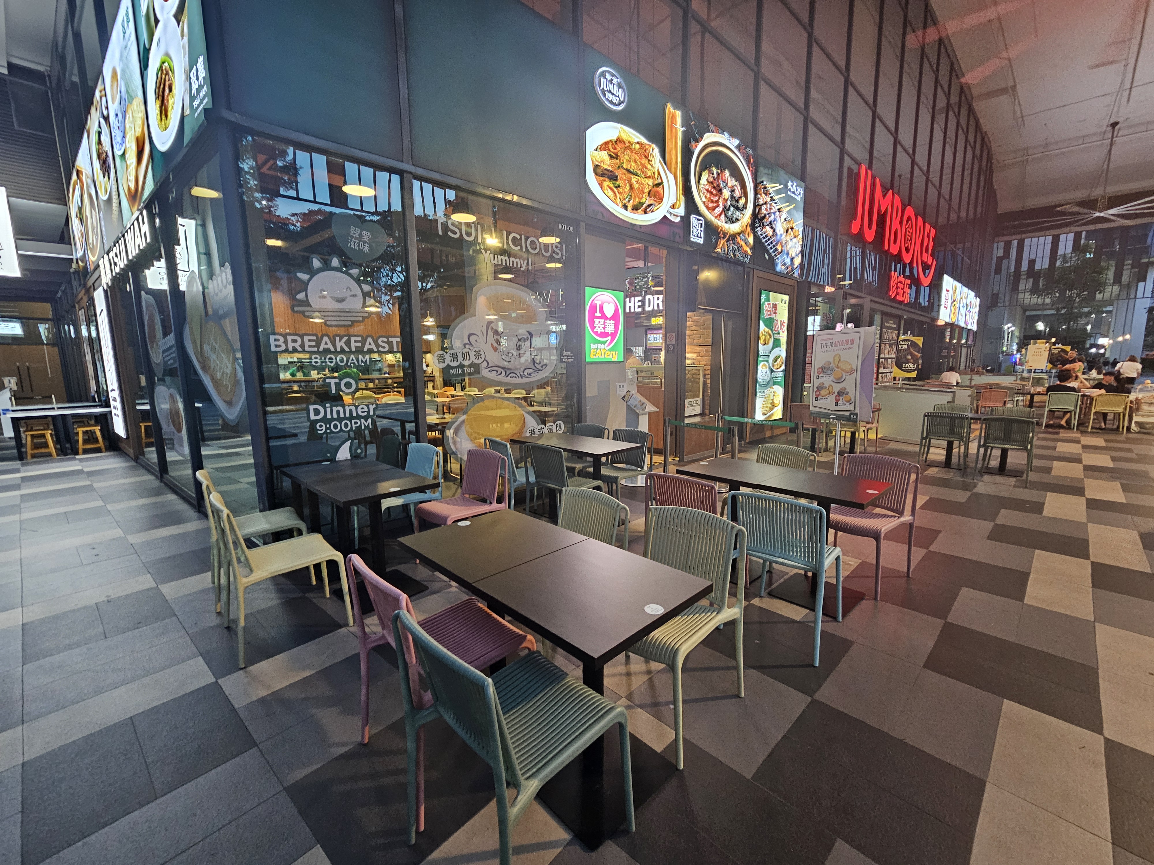 Jumboree is a delightful spot for pet lovers and food aficionados alike, offering an expansive, pet-friendly outdoor seating area that is both well-sheltered and comfortably spacious. It’s an ideal setting for breakfast, lunch, or dinner with your furry companions by your side. The dining experience here is especially enjoyable thanks to a smart and convenient ordering system—you simply scan the table QR code with your phone, choose from a variety of food and drink options spanning multiple stalls, and pay digitally. Notifications about your order are sent via WhatsApp, with clear instructions on which stall to collect your food from.