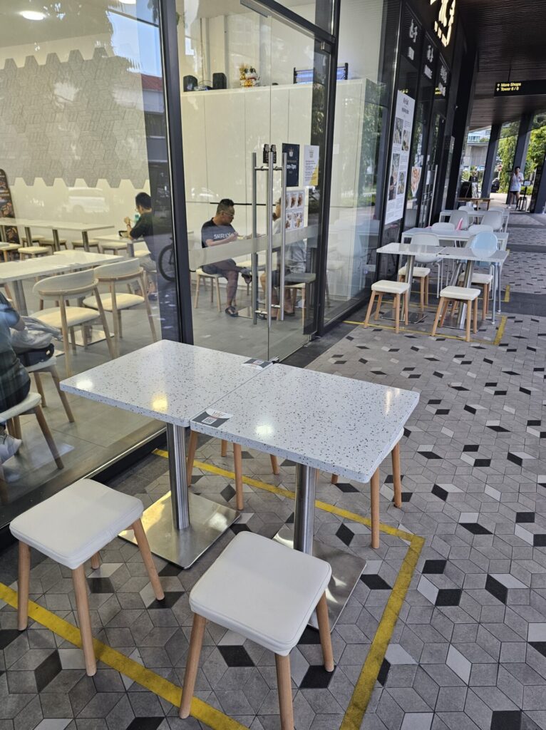 Ordering is a breeze — each table has a QR code for easy online ordering, and payments can be made seamlessly through PayNow or credit card. Once your order is ready, just head inside to the counter to pick up your food. The whole process is smooth and fuss-free, making it ideal if you’re looking to grab a quick bite without the hassle.