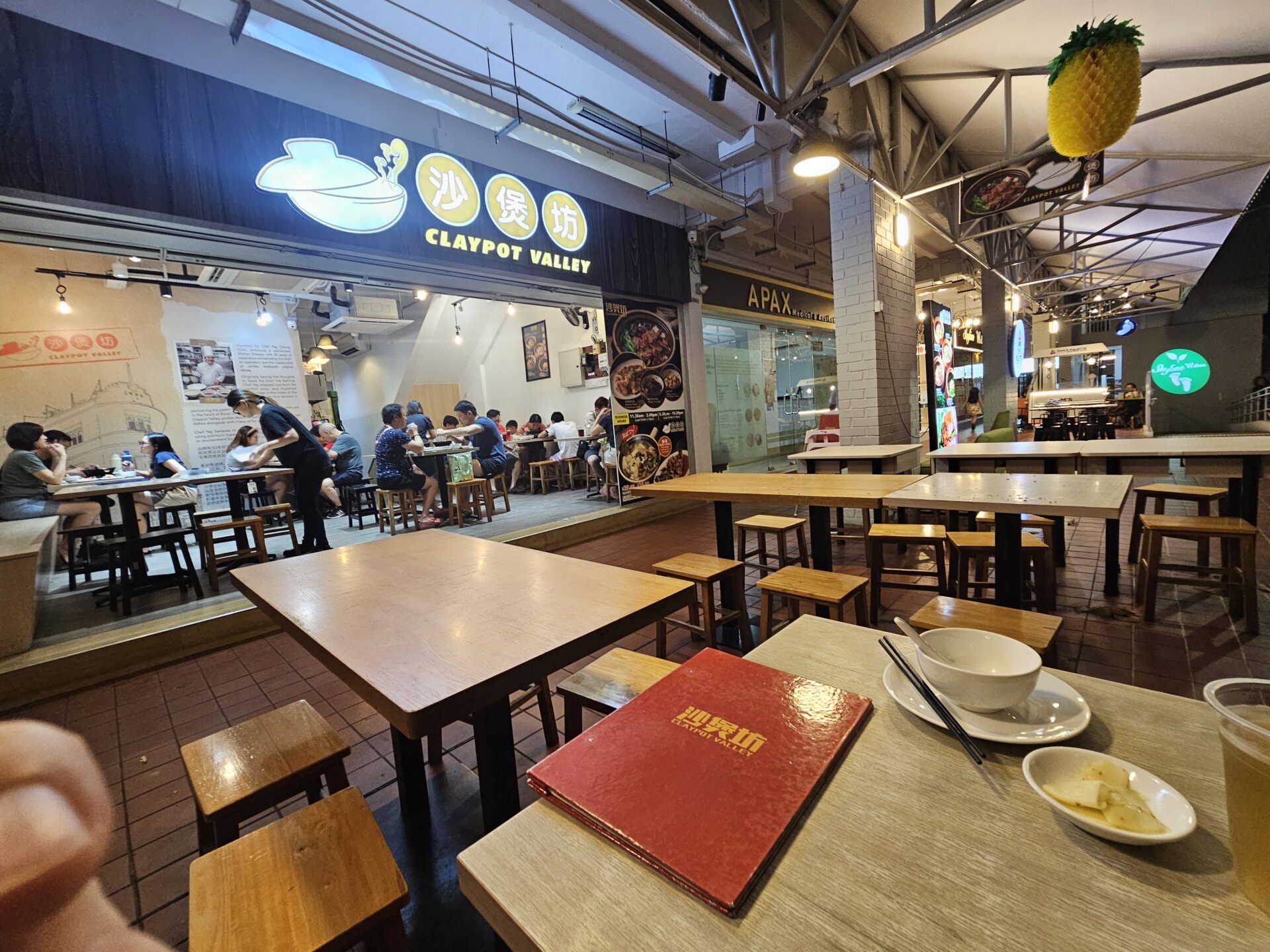 Claypot Valley in Kovan, a popular Cantonese-style claypot rice eatery known for its generous portions, flavourful dishes, and friendly, attentive service. The sheltered, breezy outdoor seating area makes it a great spot for pet owners to enjoy a satisfying meal with their furry friends, while the traditional service and acceptance of CDC vouchers add to its charm and value.